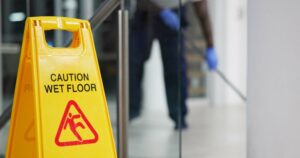 - Wet or slippery floors: Spilled liquids or freshly mopped surfaces without warning signs.
